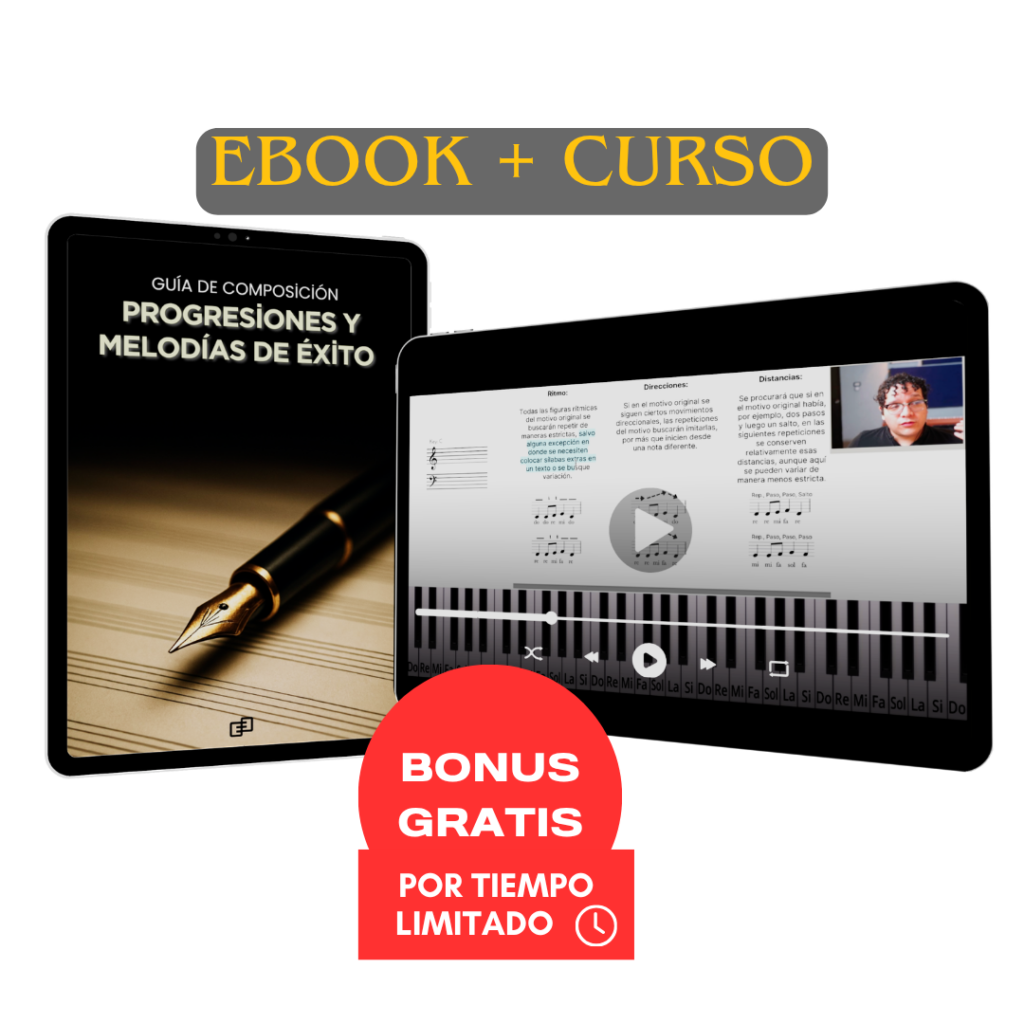 + Curso & Guía de composición de progresiones y melodías, con más de 15 lecciones organizadas pedagógicamente (disponible por tiempo limitado)