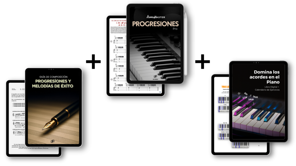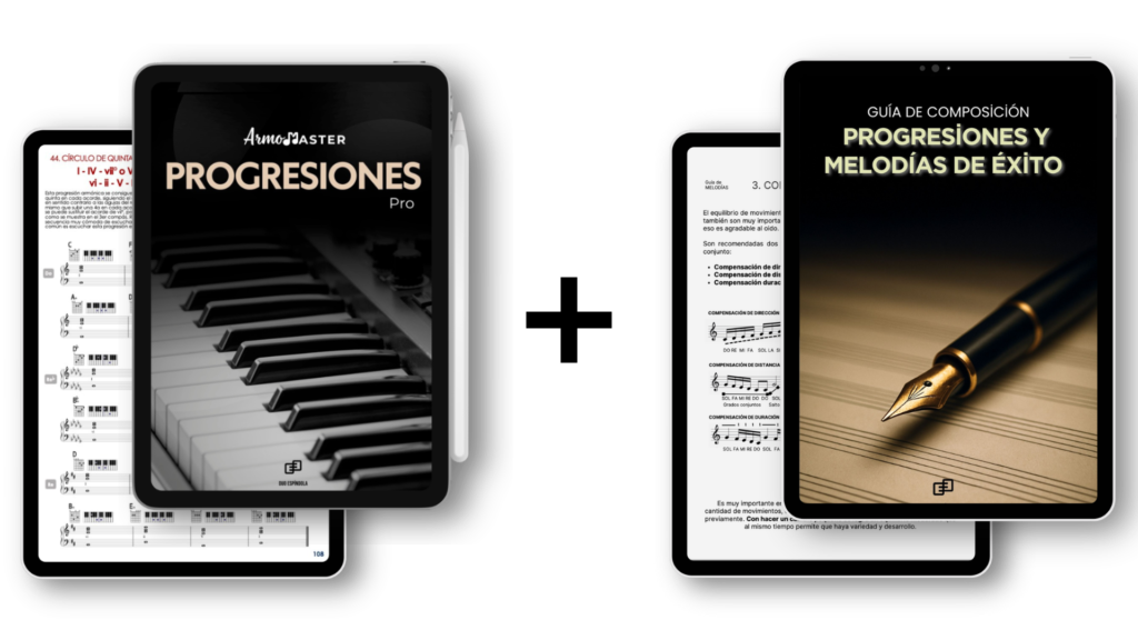 Más de 160 páginas de contenido llenas de progresiones armónicas listas para aplicar en todas tus composiciones + tu guía paso a paso para componer tus propias progresiones desde cero, y las melodías más pegajosas y memorables.